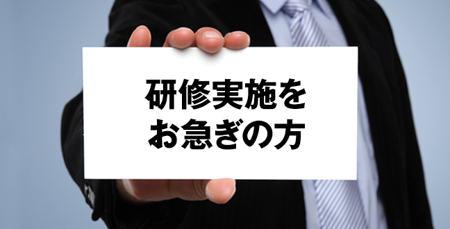 まずはお気軽にお問い合わせください。 まだ研修を実施するか決めていない場合、研修実施まで時間がなくお急ぎの場合、研修実施の予算が少ない場合でも・・・ お電話でのお問い合わせは平日 9:00〜18:00 03-6812-9618 メールでお問い合わせは 個人情報保護方針についてはこちらをご覧ください。